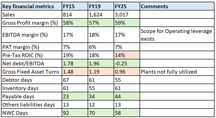 | NWC days | 73 | 80 | 100 | Longer Debtor and inventory cycle with Exports Higher inventory days in ADS give wider SKU range |