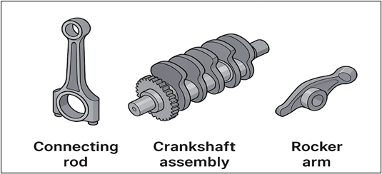 Connecting rods: It is the link between the piston and the crankshaft which allows the piston’s up-and-down movement to be passed to the crankshaft.