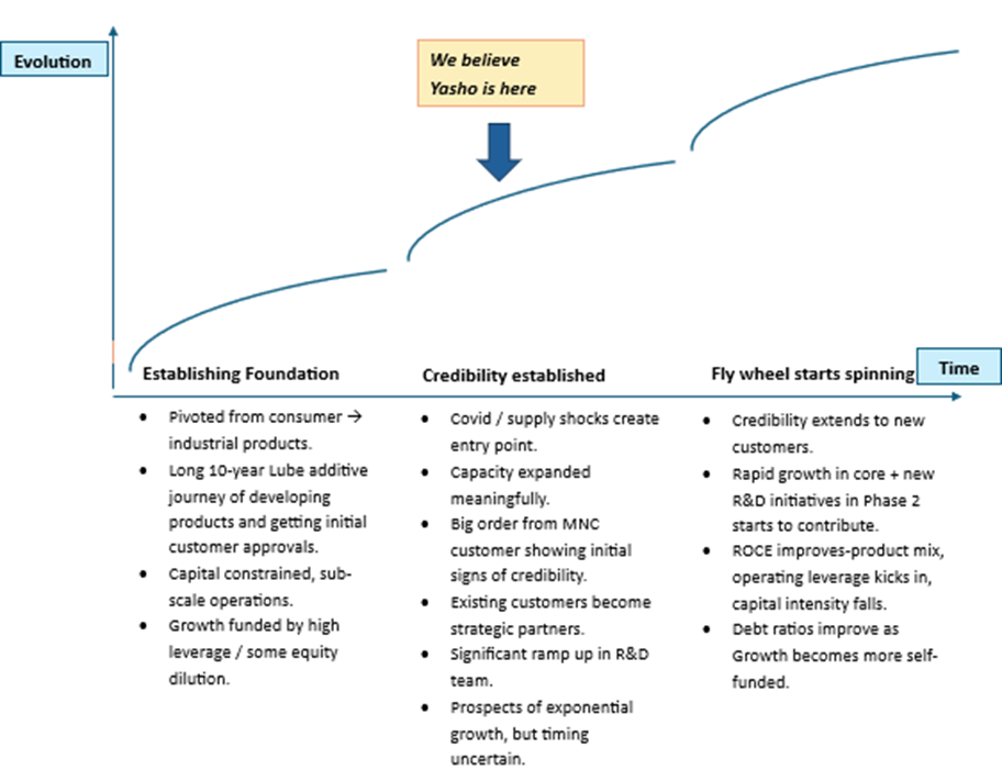 - Yasho has crossed a threshold of meaningful scale (>100 Cr EBITDA) which now allows it to invest more meaningfully in R&D talent for new product development. It has recently commissioned a new R&D lab with ~Rs 23 crore of investment.